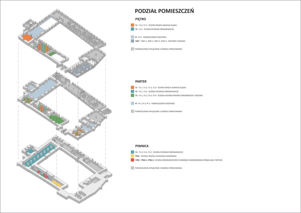 Wystawa została zaprojektowana w zabytkowych wnętrzach Zamku Piastowskiego w Krośnie Odrzańskim — jednego z kluczowych obiektów historycznych regionu lubuskiego, ściśle związanego z dziejami Piastów Śląskich. Projekt zakłada realizację nowej wystawy stałej, obejmującej wszystkie kondygnacje budynku. Tematyczne działy ekspozycji zostały dopasowane do amfiladowego układu pomieszczeń — poszczególne sale lub grupy pomieszczeń odpowiadają odrębnym wątkom narracyjnym, tworząc logiczną i czytelną ścieżkę zwiedzania.